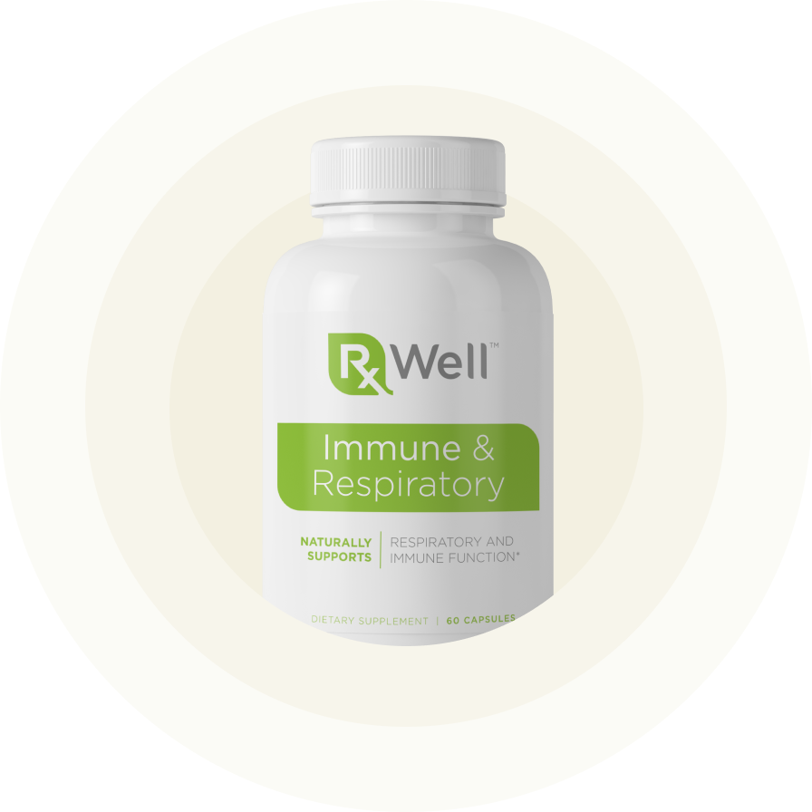RxWell Immune & Respiratory supplement supports immune and respiratory health with rare, natural ingredients. Crafted with ingredients supported by published scientific research showing they may reduce respiratory discomfort, support lung function, protect cells during cold & flu season, and strengthen overall immune function.*